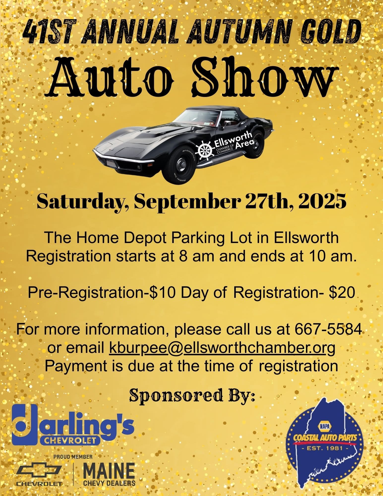 Auto Show Sponsored by: Darlings Chevy and Coastal Auto Parts Napa Get ready to shine at the 41st Annual Autumn Gold Car Show! This beloved tradition brings together classic car owners and enthusiasts from across the region for a dazzling display of chrome, color, and craftsmanship. Whether you’re showing off your pride and joy or simply strolling through rows of beautifully restored and unique vehicles, there’s something for everyone to enjoy. With trophies, music, and plenty of Autumn Gold fun, the car show is the perfect way to celebrate community and kick off the season in style.